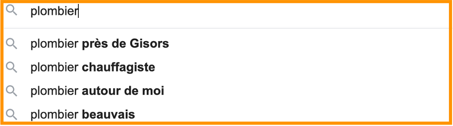 [Voici les premières suggestions Google quand on tape « plombier » simplement dans la barre de recherche :